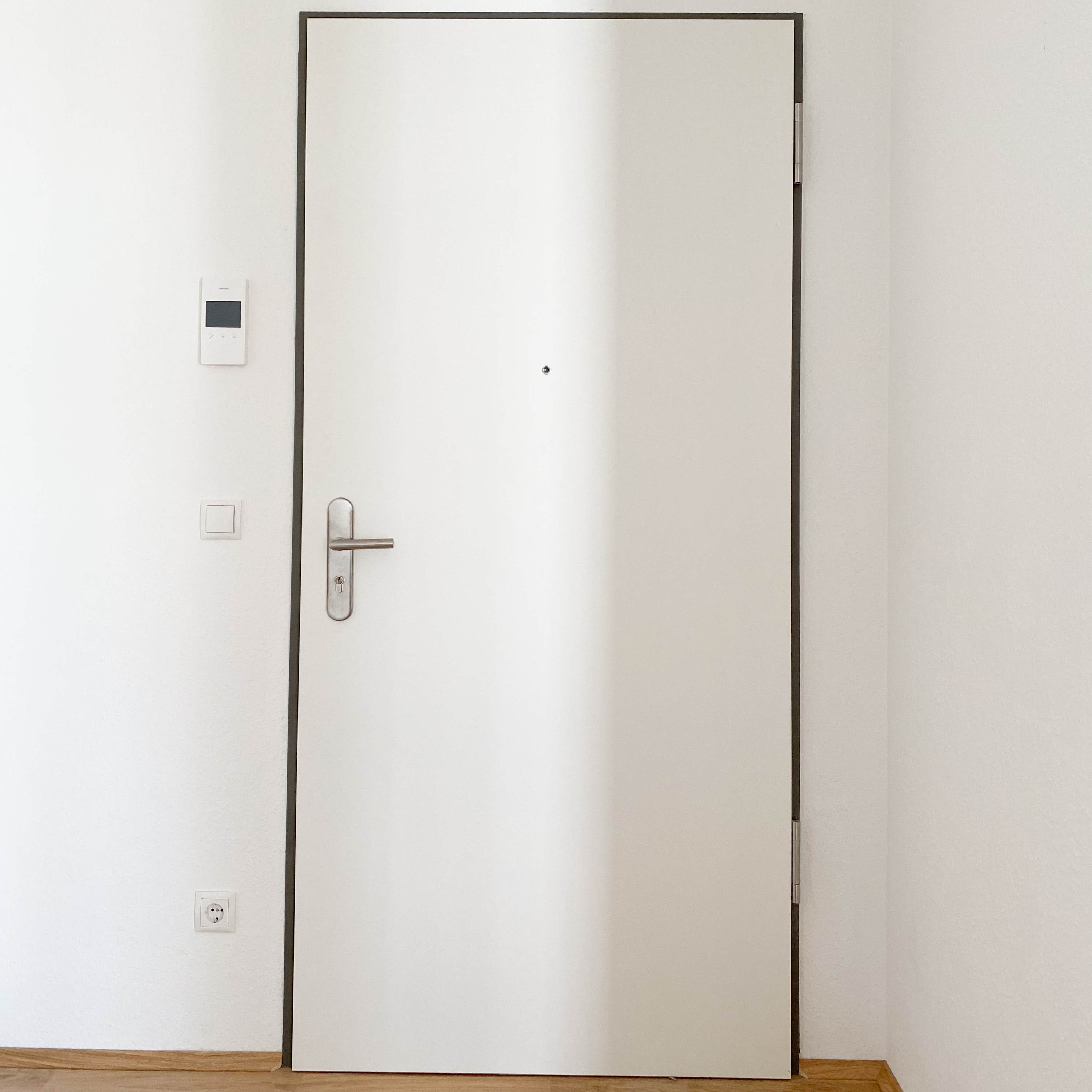 Manchmal ist es ganz gut, eine Tür hinter sich schließen zu können, ob als Abgrenzung zum privaten Bereich oder auch zwischen den Räumen. Die Ausführung der Drückergarnituren erfolgt in Aluminium. Die Holztürblätter aus Röhrenspan sind weiß lackiert und unterseitig leicht gekürzt (Unterschnitt). Bei innenliegenden Räumen ohne mechanische Entlüftung ist das Türblatt zusätzlich mit einem Lüftungsgitter versehen.